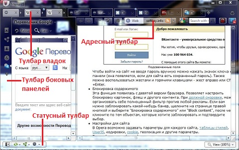 Тулбары и панели Функция появилась в шестой версии Opera. В Opera есть различные тулбары:
